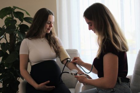 Sobald dein Kind geboren ist und du wieder zu Hause bist, besuche ich euch regelmäßig in den ersten drei Monaten nach der Geburt, um sicherzustellen, dass es euch gut geht.